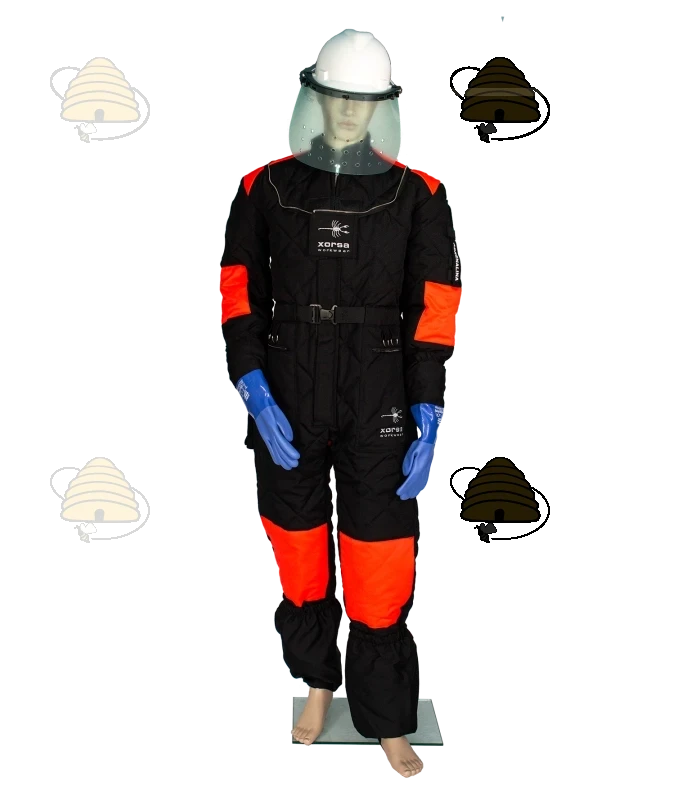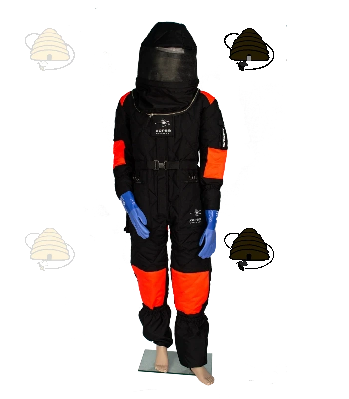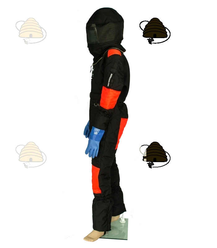 Kompletter und sehr professioneller Anzug / Overall in schwarzer Farbe, der hervorragenden Schutz vor der Asiatischen Hornisse bietet. Der Anzug ist mit praktischen Reißverschlusstaschen ausgestattet. Die Außenschicht des Anzugs besteht aus Cordura-Stoff, der für hervorragenden Schutz sorgt. Dieses Material ist extrem strapazierfähig, reißfest und wasserabweisend. Cordura wird häufig zur Herstellung von militärischer Ausrüstung verwendet.