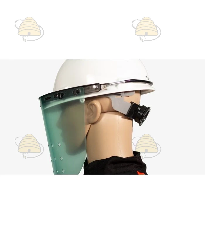 Der Anzug enthält einen verstellbaren Kunststoffhelm mit Kunststoffvisier, der dafür sorgt, dass der Abstand zwischen dem Gitter und Ihrem Kopf immer gleich bleibt und Sie kaum durch das Gitter in Ihr Gesicht gestochen werden können. Außerdem bietet der Kunststoffhelm mit Kunststoffvisier bereits zusätzlichen Schutz. Der Helm ist mit Klettverschluss an der Kapuze mit Gitter befestigt. Das Visier besteht aus einem guten und robusten Gittermaterial. Sie haben einen Sichtbereich von 180 Grad. Die Kapuze ist abnehmbar und kann separat gewaschen werden.