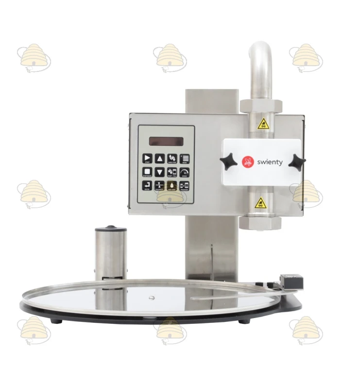 Dank der Anti-Tropf-Funktion bleibt der Arbeitsplatz sauber, und der Rostfreie Edelstahl-Drehtisch (Ø 45 cm) sorgt dafür, dass die Honiggläser während des Abfüllens stabil positioniert und einfach weitergereicht werden können.