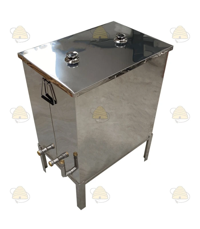 Rechteckiger Dampf-Wachsschmelzer aus Edelstahl zur schonenden Verarbeitung von Waben mittels Dampf. Das Gerät ist robust ausgeführt und für den regelmäßigen Einsatz in der Imkerei geeignet.
