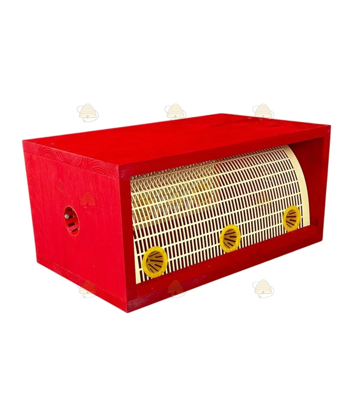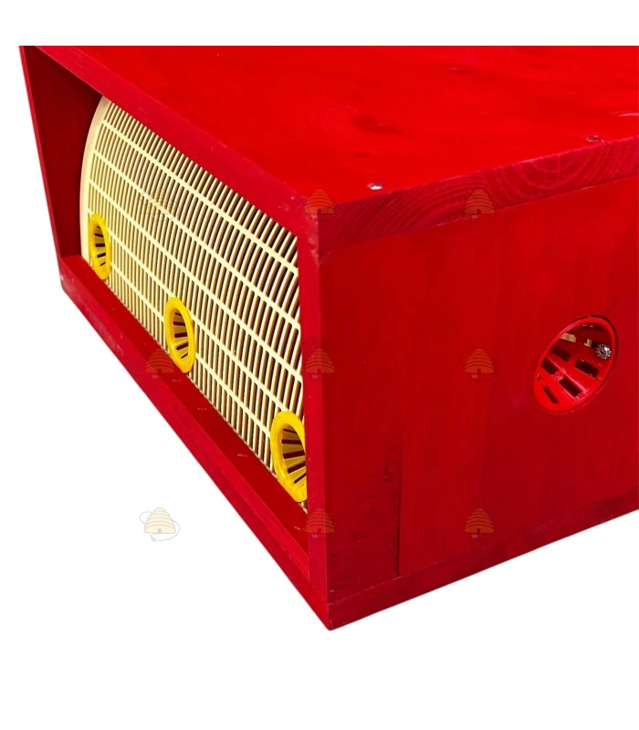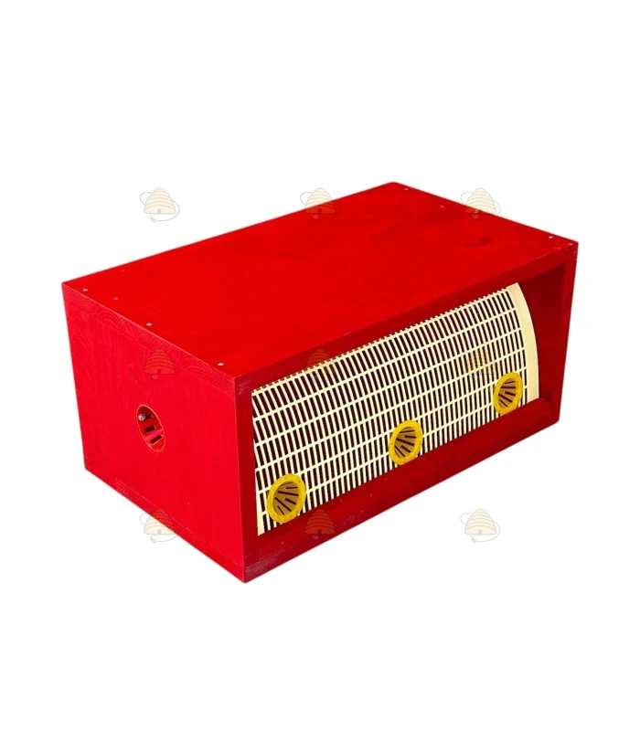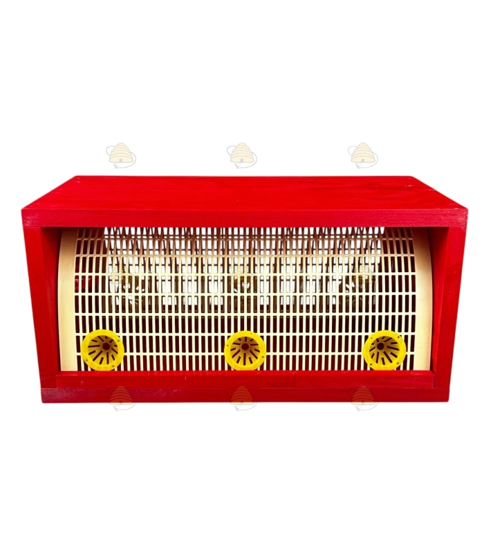 Diese belgische Hornissenfalle wurde speziell als selektive Falle für die asiatische Hornisse konzipiert und entwickelt. Das Modell verfügt über acht konische Einlässe, von denen sich sechs im Königinnengitter und einer an jedem Ende befinden. Alle Einlässe haben einen Durchmesser von etwa 8 mm. Diese Abmessungen verhindern, dass die Europäische Hornisse, die größer als die Asiatische Hornisse ist, eindringen kann. Andere Insekten, die versehentlich in die Falle geraten, können jedoch durch das Königinnengitter entkommen. Die Hornissenfalle ist rot lackiert, da diese Farbe für die asiatische Hornisse besonders attraktiv ist. Wir empfehlen, die Falle für einige Stunden in den Gefrierschrank zu legen, um die Hornissen in der Falle zu töten.