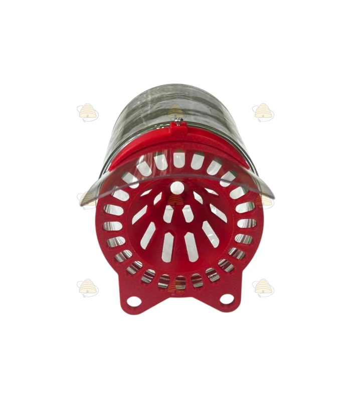 Asiatische Hornissenfalle, geliefert in Rot, inklusive Glasbehälter 1 kg. Diese einfache Hornissenfalle ist für die liegende Verwendung konzipiert. Den Lockstoff auf ein Stück Schwamm in das Glas geben, den Hornisseneingang aufschrauben und das Glas auf einer Flugroute der Asiatischen Hornissen platzieren. Der Deckel der Falle passt auf Gläser mit einem 82 mm Deckel.