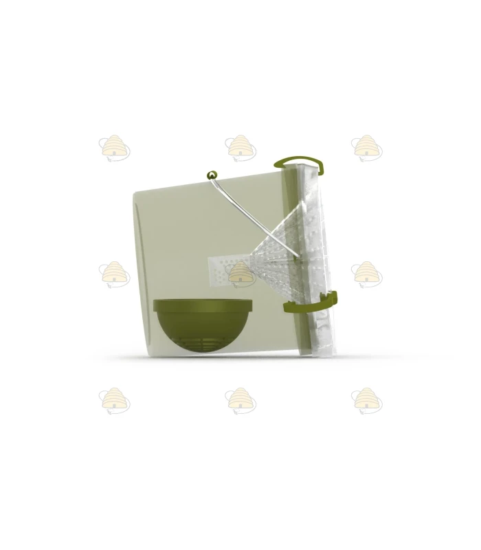 Sie können den Eimer mit Lockstoff füllen, oder Sie können ein kleines Lockstoffgefäß in den Eimer stellen und den Lockstoff hineingießen. Dieses Lockstoffgefäß ist separat in unserem Webshop erhältlich und wird NICHT mitgeliefert.