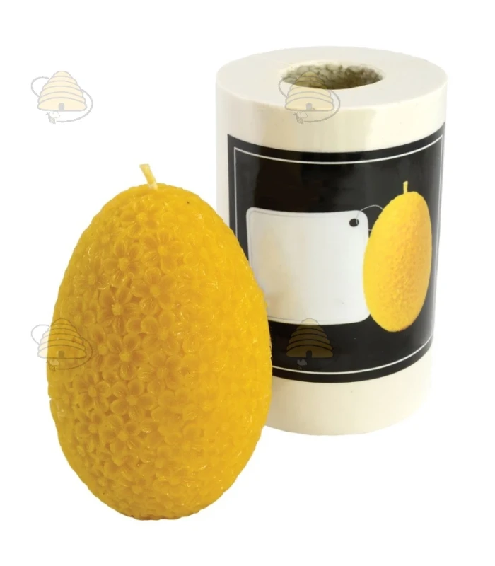 Silikon-Gießform zur Herstellung einer dekorativen Kerze in Form eines großen Ostereis mit Blumenmuster. Geeignet für die Verarbeitung von Bienenwachs, Paraffin oder anderen Kerzenwachsen.