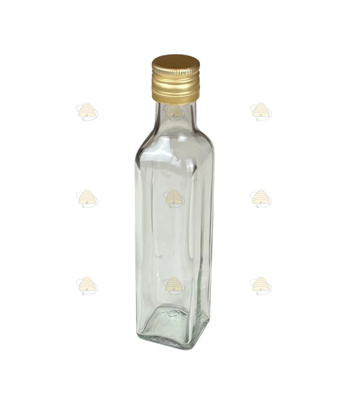 Quadratische Glasflasche mit Metall-Drehverschluss 250 ml - 8 Stück