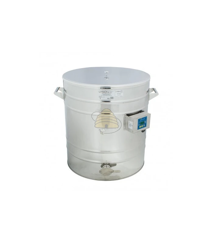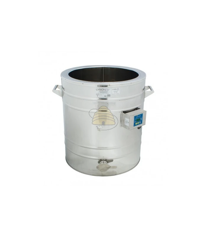 Der Abfüllbehälter / Heizbehälter besteht aus hochwertigem Edelstahl (RVS / INOX) und ist lebensmittelecht. Mit einem Durchmesser von 600 mm und seinem 100 L Fassungsvermögen eignet er sich sowohl für Hobbyimker*innen als auch für mittelgroße Imkereien.