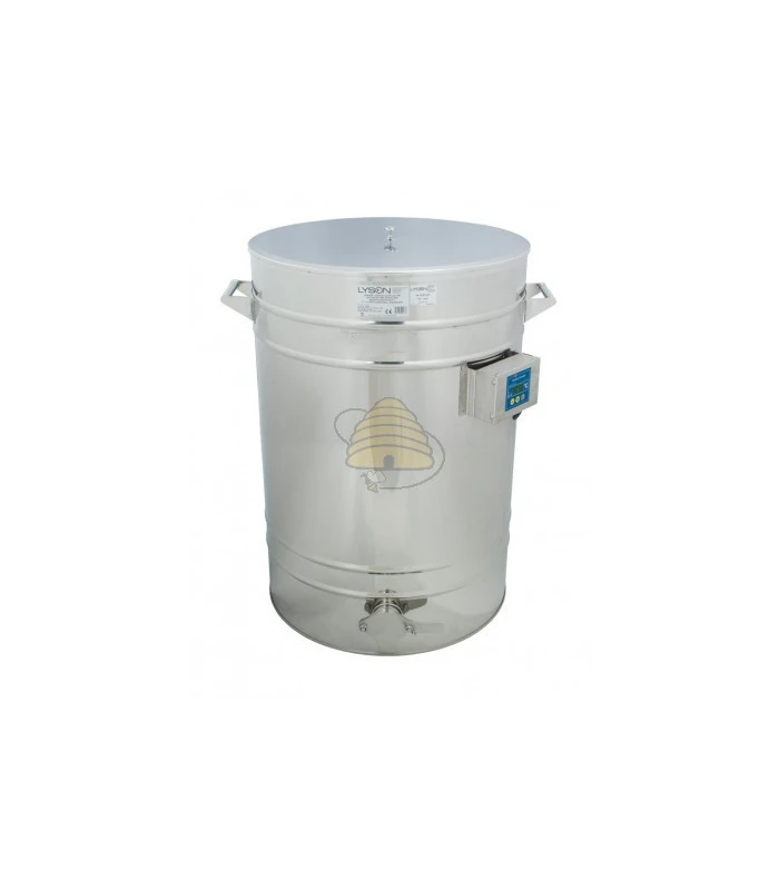 Abfüllkübel mit einem Fassungsvermögen von 150 Litern zur schonenden Verflüssigung von kristallisiertem Honig bei niedriger Temperatur. Durch die kontrollierte Erwärmung lösen sich die Zuckerkristalle, sodass der Honig wieder fließfähig wird und anschließend abgefüllt werden kann.