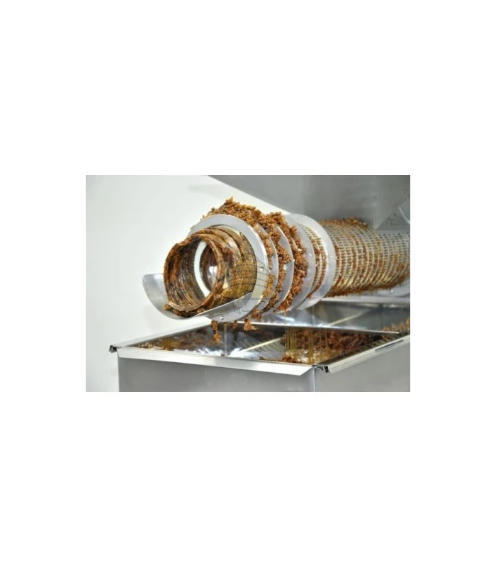 Die Verarbeitung erfolgt in einem perforierten Zylinder. Der Honig tritt durch die Öffnungen der perforierten Zylinderwand aus und fließt in die darunterliegende Siebeinheit. Das verbleibende Wachs wird über eine Schnecke weiter verdichtet und aus dem Gerät gefördert. Das Ergebnis ist weitgehend trockene Wachsmasse, die anschließend eingeschmolzen werden kann.
