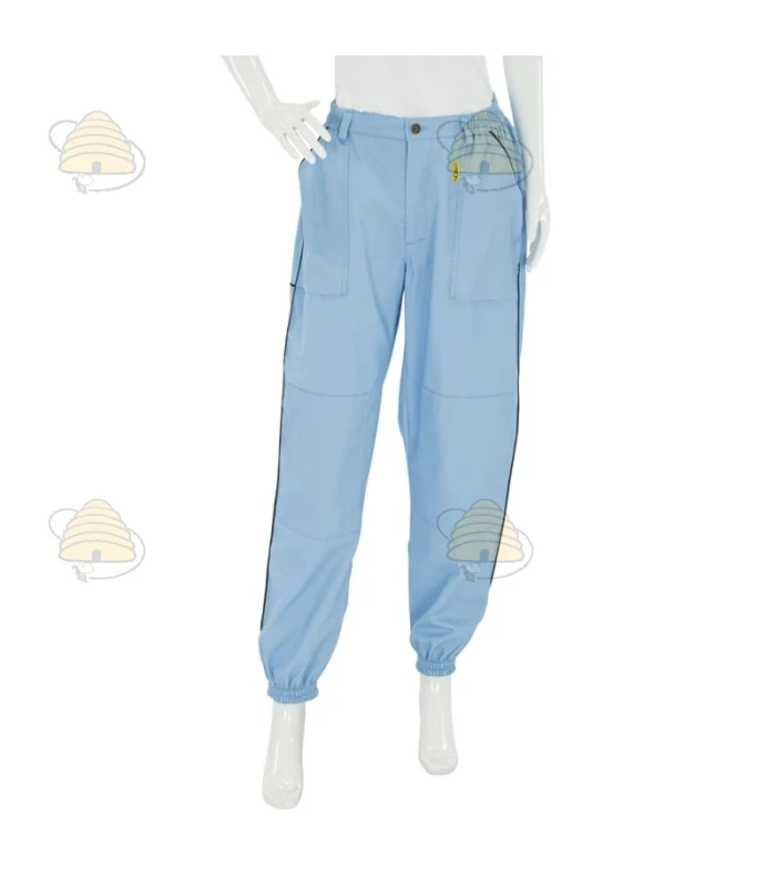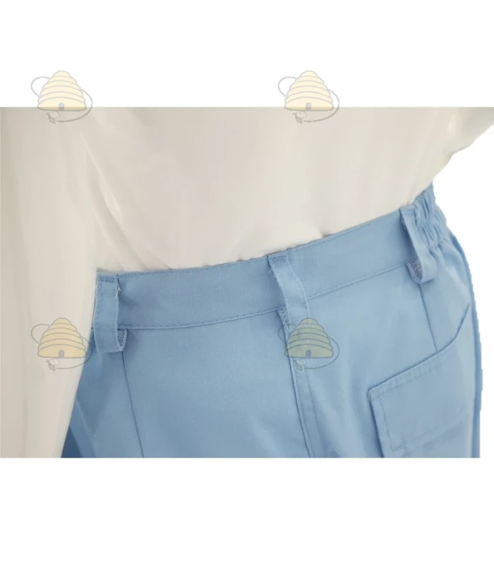 Hellblaue Imkerhose der Marke Lyson. Ideal kombinierbar mit der hellblauen Imkerjacke. Die Hose besteht aus strapazierfähigem Material, das zuverlässigen Schutz vor Bienenstichen bietet und gleichzeitig atmungsaktiv ist. Erhältlich in verschiedenen Größen.