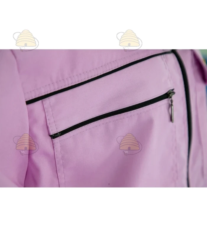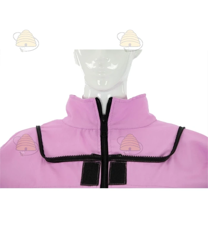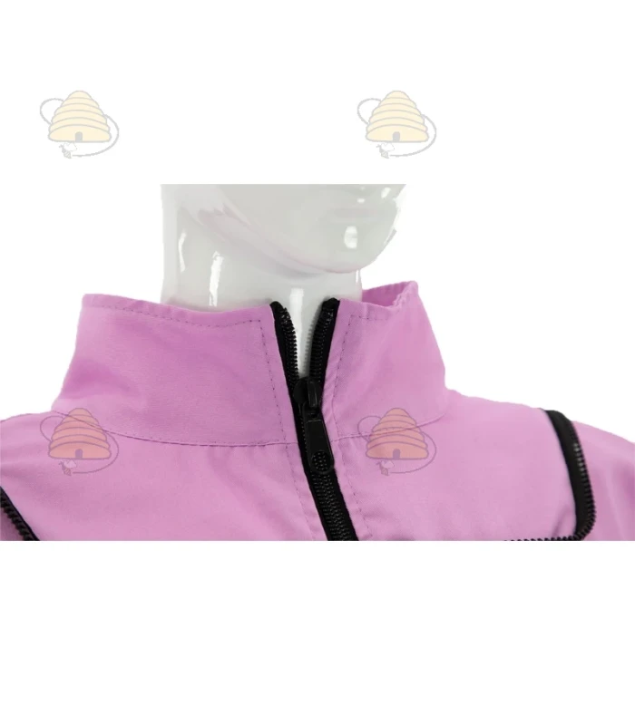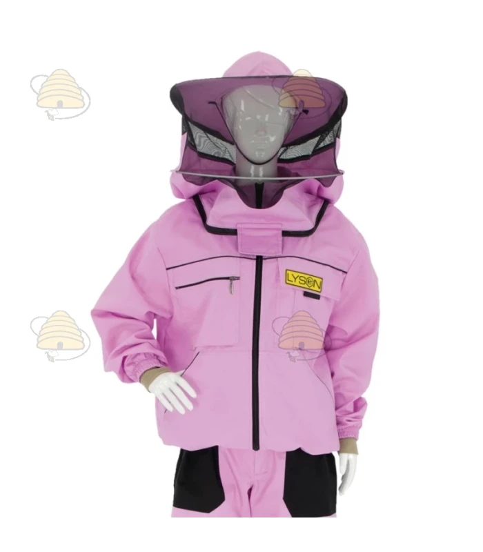 Farbenfrohe Imkerjacke der Marke Lyson. Das Jacke ist lila und verfügt über eine runden Hut, sowie Ärmelabschlüsse mit Bündchen für optimalen Schutz. Hergestellt aus atmungsaktivem Material, bietet diese langlebige Imkerjacke hohen Tragekomfort und schützt zuverlässig bei der Arbeit am Bienenstock.
