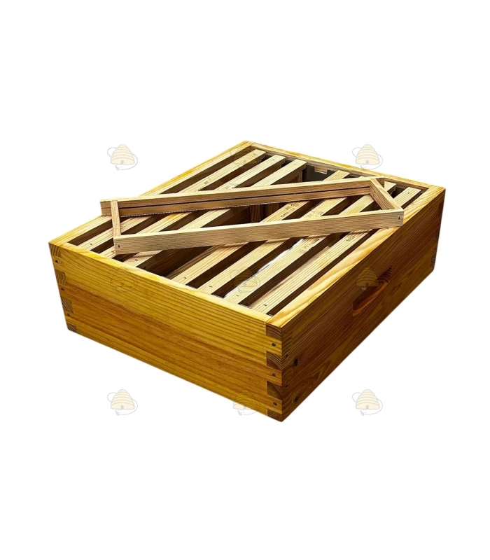 Dieser Honigraum für die Langstroth-Beute ist mit Leinöl imprägniert und wird inklusive 8 Rähmchen mit Nut für die Mittelwand ausgestattet. Die Rähmchen können selbstverständlich auch ohne Nut verwendet werden.
