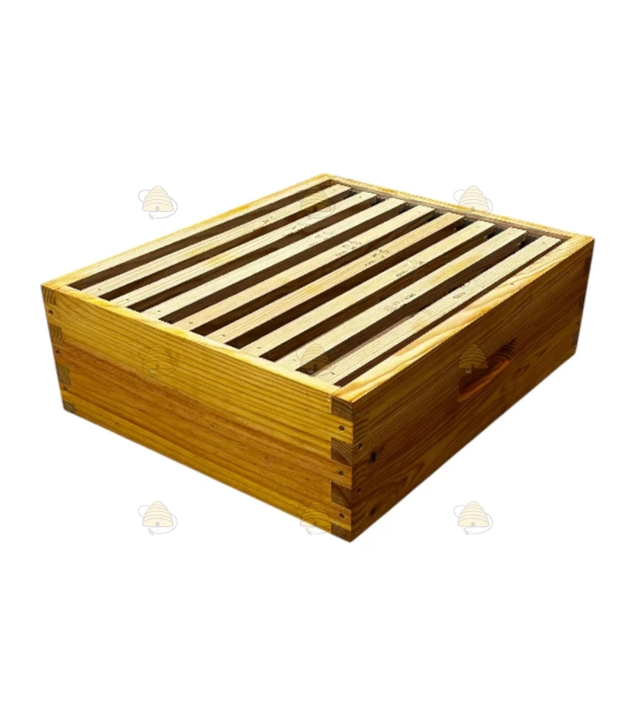 Die Honigzarge der Langstroth US Beute ist außerdem mit Abstandsleisten ausgestattet, die dafür sorgen, dass die Rähmchen sauber und sicher an ihrem Platz bleiben.