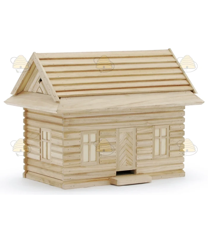 Die Beute ist mit einem Sichtfenster mit Glasscheibe ausgestattet, das sich mithilfe einer Holzplatte öffnen und schließen lässt.