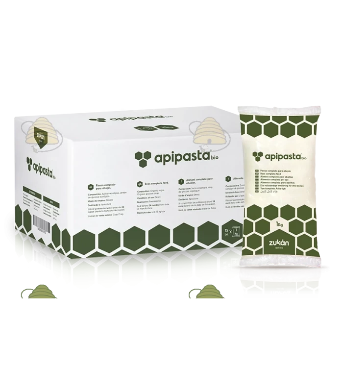 Apipasta Bio wird aus biologischen Zuckern hergestellt, aus dem Bedarf nach kontrolliertem und sicherem Futter, das den Bio-Produktionsstandards der Europäischen Union entspricht. Apipasta besteht hauptsächlich aus Saccharose, wodurch es für Bienen sehr attraktiv ist und für Imker leicht zu verwenden ist. Der Teig besteht aus Mikrokristallen, wobei jedes Kristall mit einer Schicht Glukosesirup überzogen ist. Er ist speziell so konzipiert, dass er von den Bienen leicht aufgenommen werden kann.